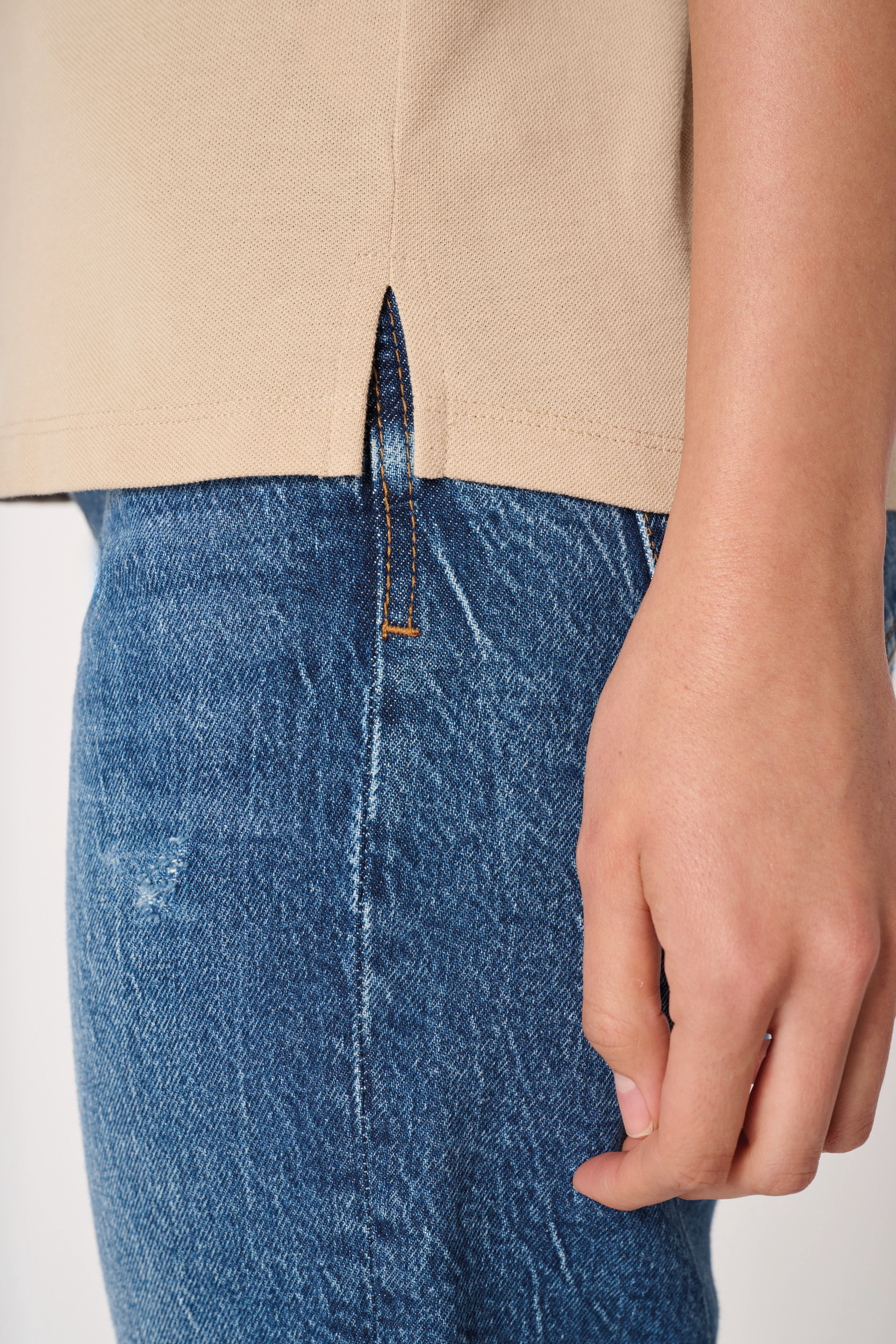 - Kraag en mouwboorden in 1x1 ribboord voor een verzorgde look.