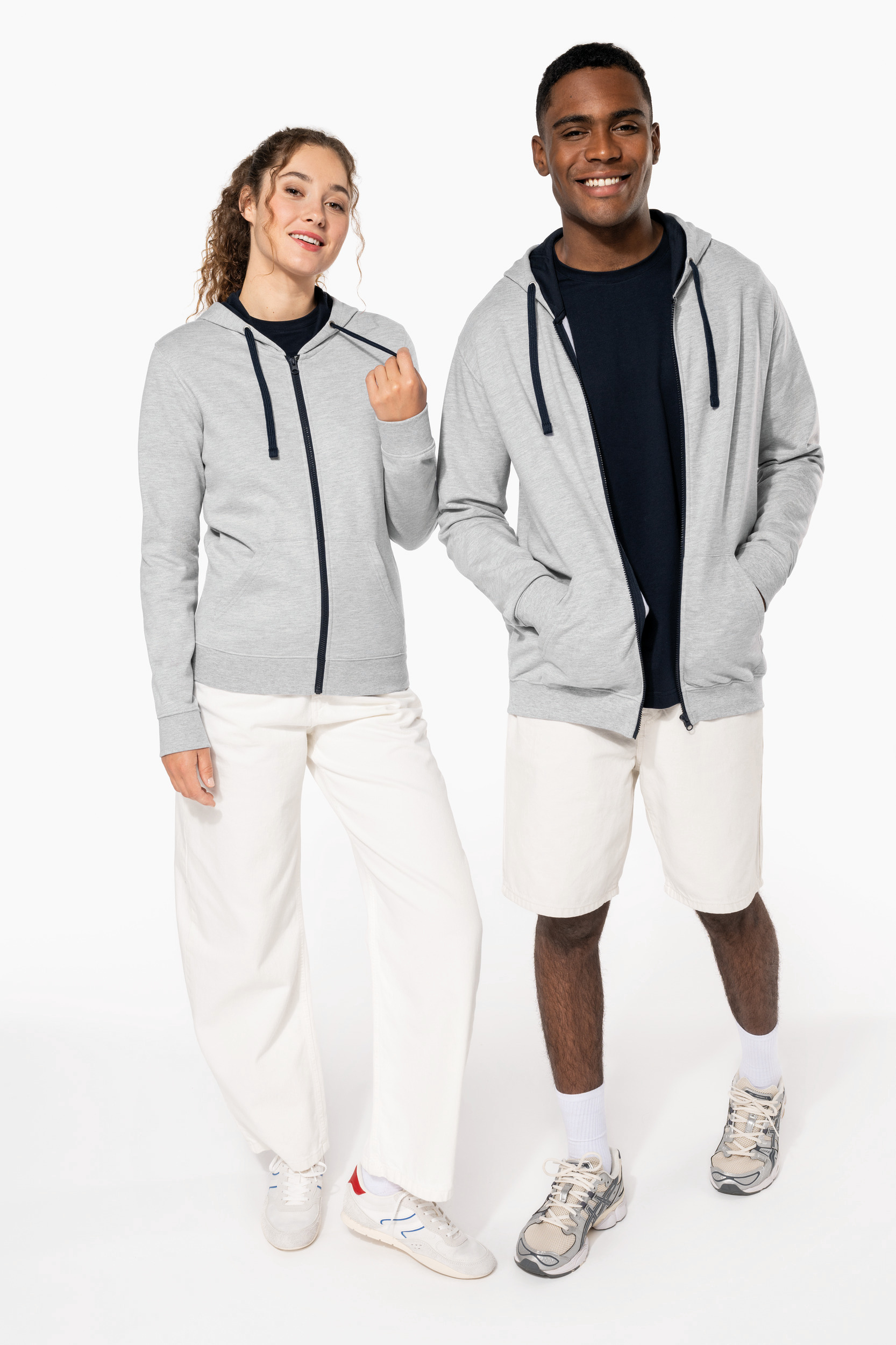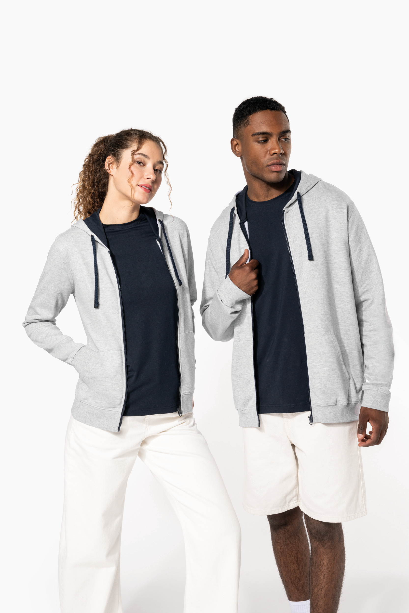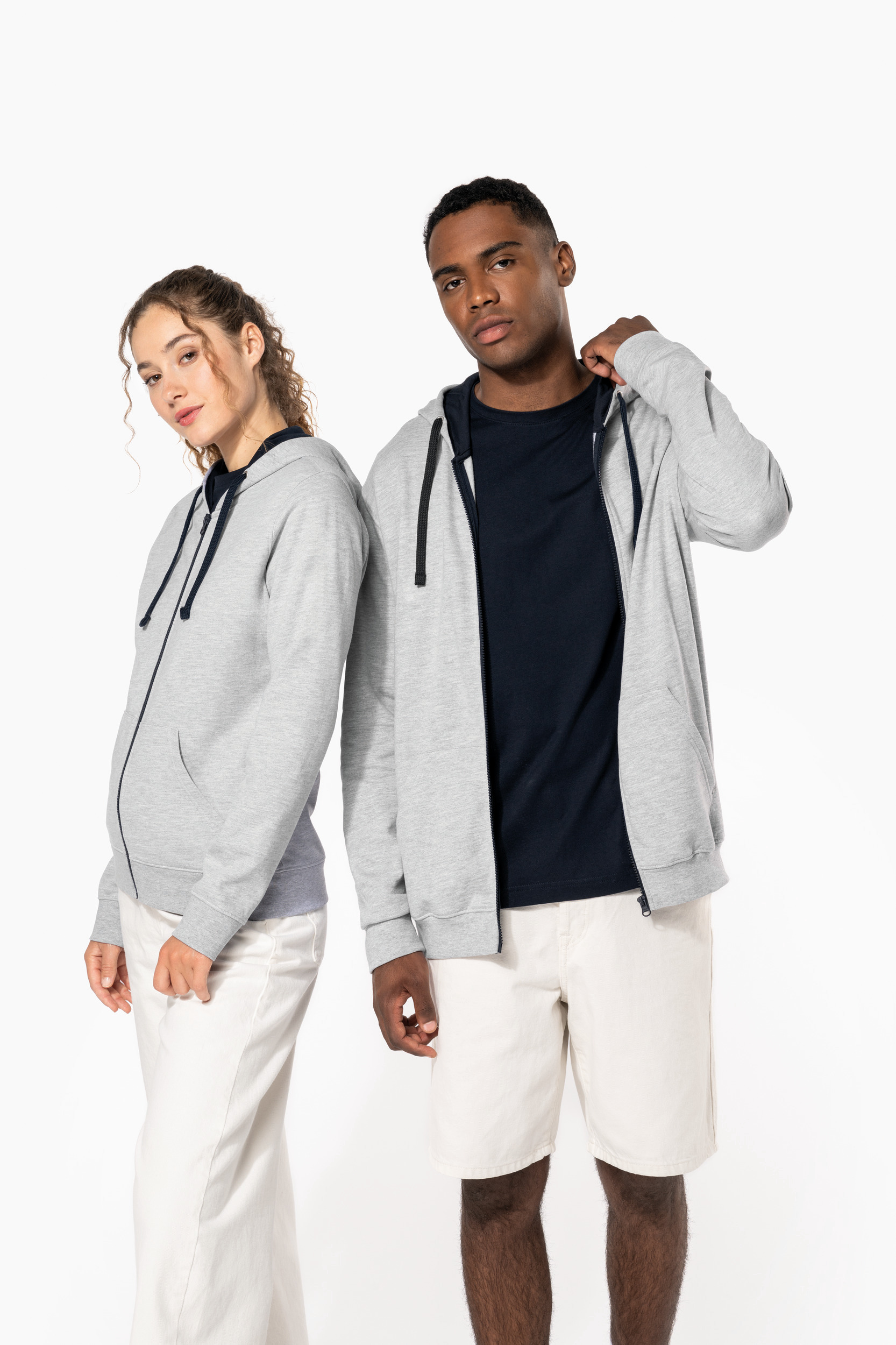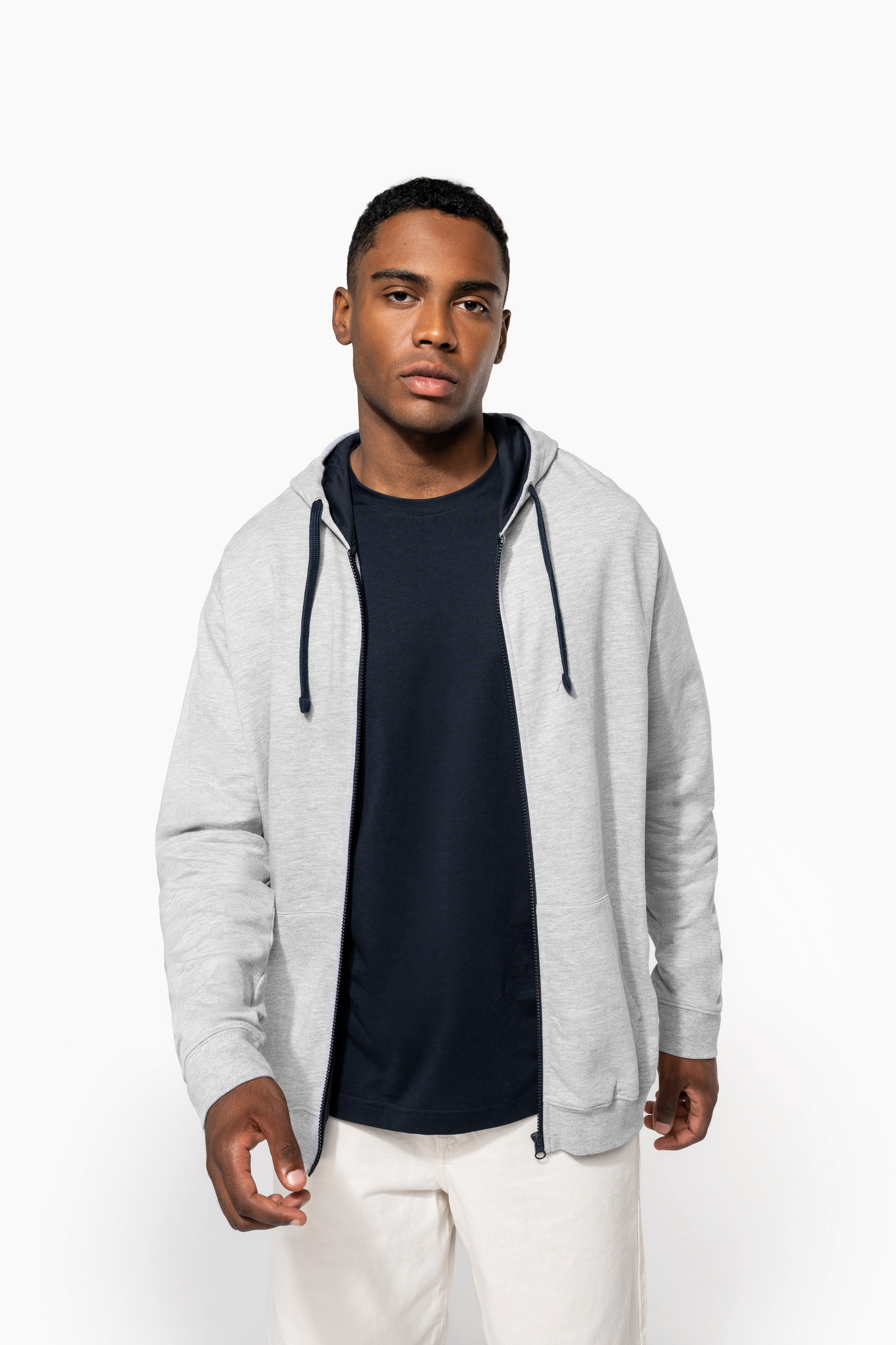 - Snoeropening voor headset in de kangoeroezak en halsopening.